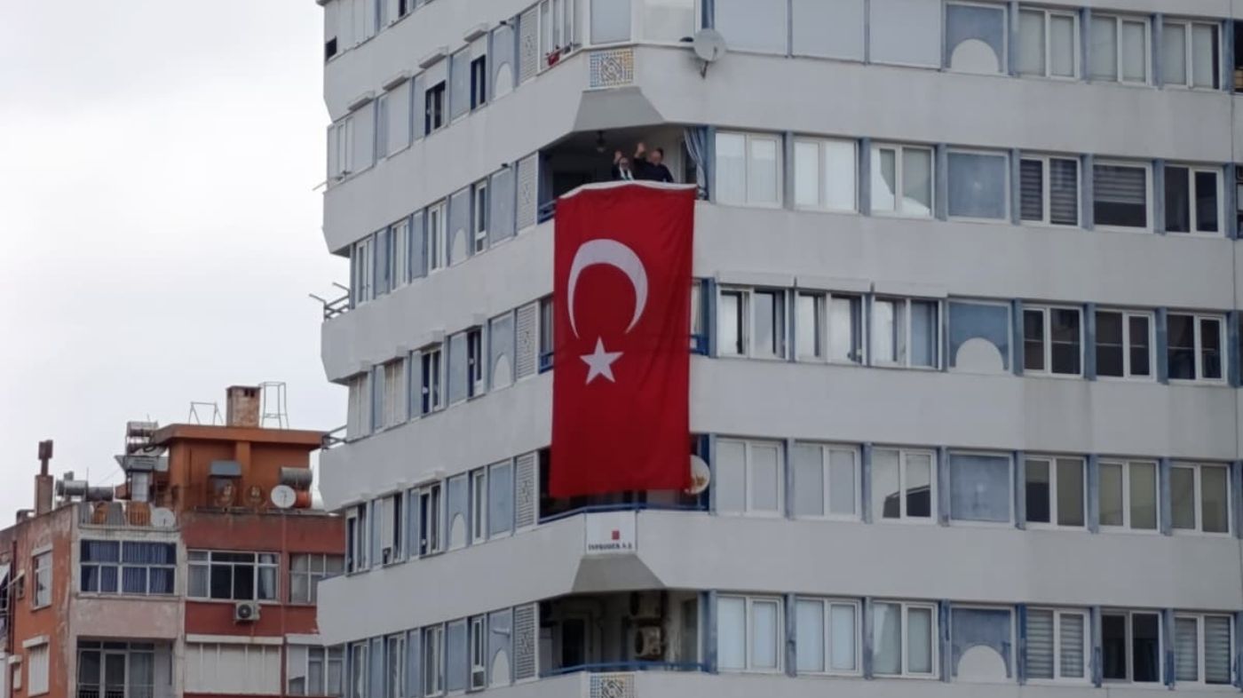 Antalya’nın Saraçoğlu İşhanı’nda oturan Fevzi Dündar, 23 Nisan Ulusal Egemenlik ve Çocuk Bayramı’nın coşkusunu yaşatmak adına balkonuna dev bir Türk bayrağı astı. Bayramın anlam ve önemine vurgu yapmak isteyen Dündar’ın bu hareketi çevredeki vatandaşların takdirini kazandı.