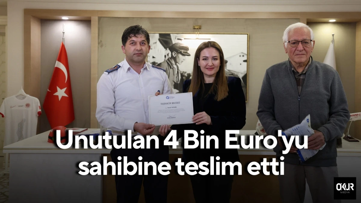 Antalya Büyükşehir Belediyesi’ne bağlı toplu taşıma şoförü Yusuf Yevlal, örnek bir davranış sergiledi. Yevlal araçta unutulan 4000 Euro’yu kayıp eşya birimine bildirerek sahibine ulaşılması için gerekli süreci başlattı. Bulunan para Antalya Büyükşehir Belediye Başkan Vekili Büşra Özdemir tarafından sahibine teslim edildi. Özdemir, örnek bir davranış sergileyen şoför Yevlal’a da teşekkür belgesi takdim etti.