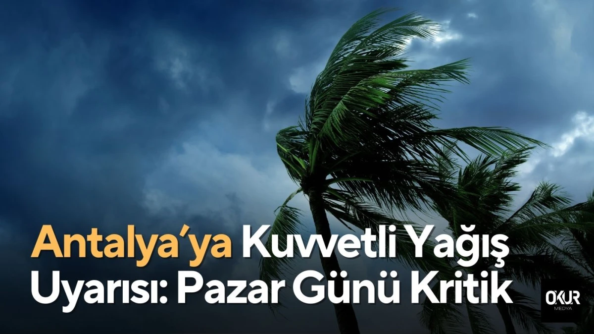 Antalya Valiliği ve Meteoroloji, 11 Ocak Pazar günü kent genelinde kuvvetli ve yer yer şiddetli yağış beklendiğini duyurdu. Yetkililer, sel, su baskını ve ulaşımda aksamalar gibi olumsuzluklara karşı vatandaşları uyardı.