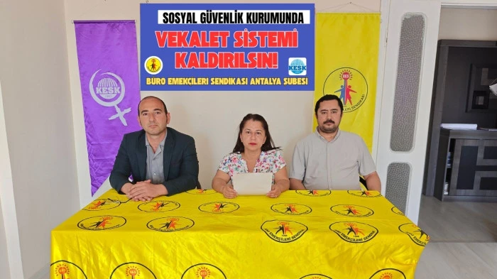 Antalya’da Büro Emekçileri Sendikası (BES) Şube Başkanı Devrim Mol, SGK’daki zorunlu rotasyon ve vekalet sistemiyle ilgili önemli açıklamalarda bulundu. Sendika binasında düzenlenen toplantıda mevcut uygulamaların çalışan memnuniyetini ve kurumsal verimliliği olumsuz etkilediği vurgulandı.