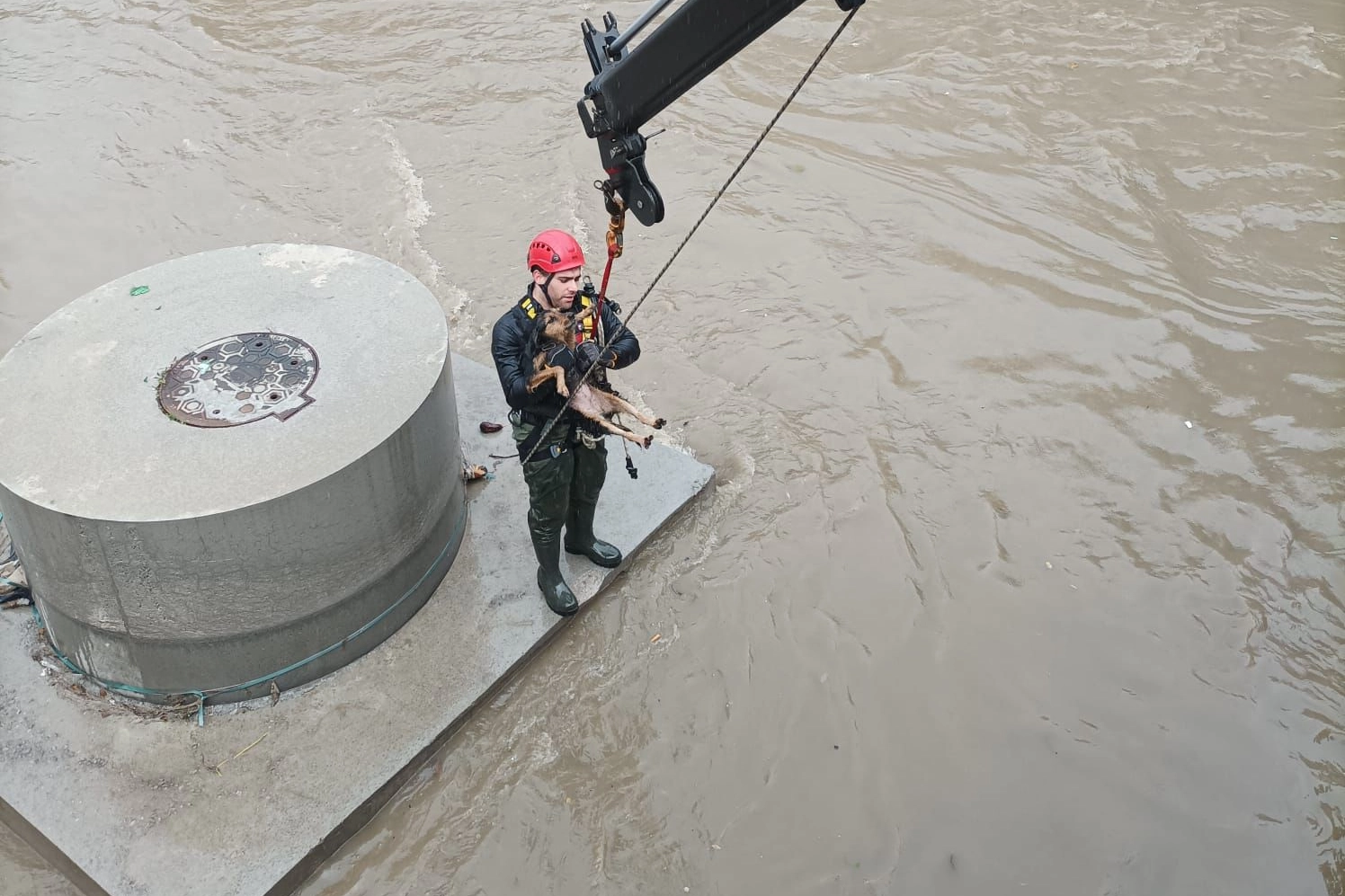 Karabağlar ilçesi Aşık Veysel Mahallesi’nde dere yatağına düşen bir köpeğin fark edilmesi üzerine çevre sakinleri durumu 112 Acil Çağrı Merkezi’ne bildirdi. Yağış nedeniyle su seviyesinin yükseldiği dereden köpeğin kurtarılması için bölgeye İzmir Büyükşehir Belediyesi İtfaiye Dairesi Başkanlığı ekipleri, arazöz ve kurtarma aracıyla sevk edildi. Olay yerine kısa sürede ulaşan ekipler, dere yatağında mahsur kalan köpeği kurtarmak için çalışma başlattı. Yaklaşık 10 dakika içerisinde bulunduğu yerden güvenli bir şekilde çıkarılan köpeğin sağlık durumunun iyi olduğu öğrenildi.