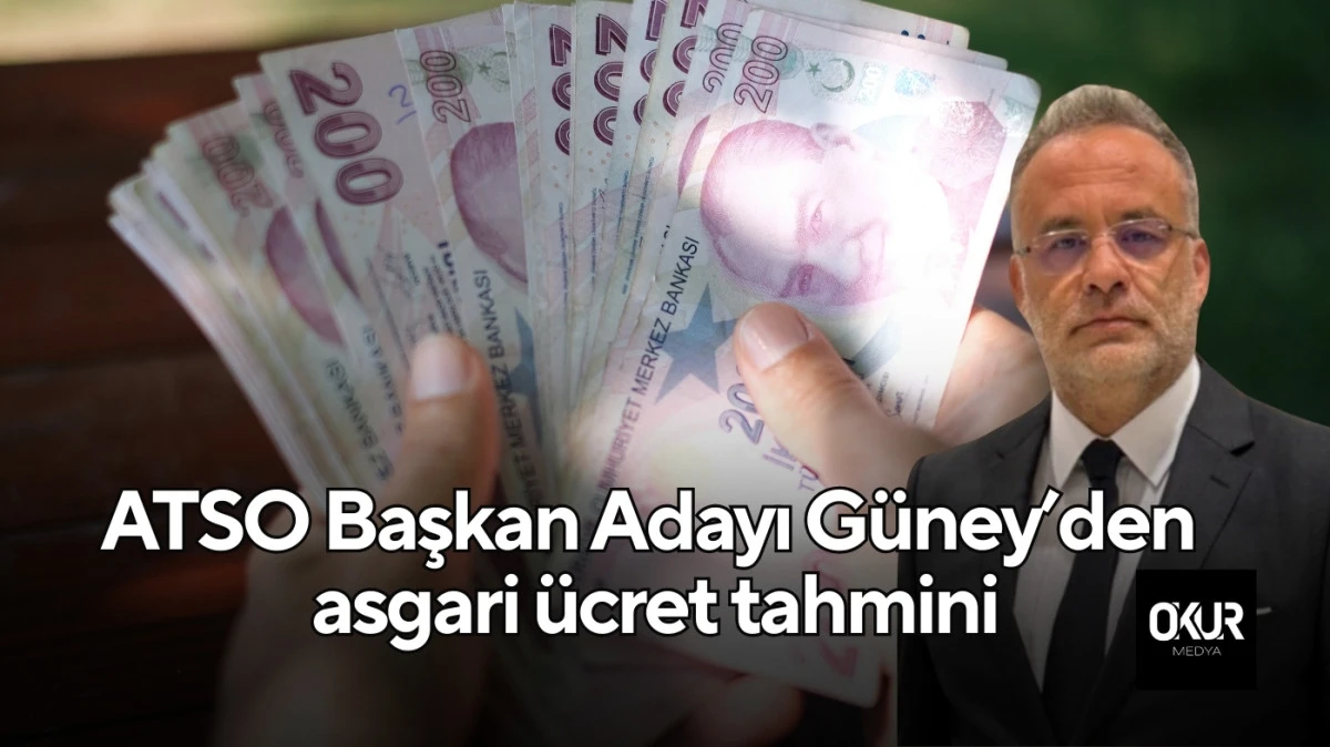 Ekonomi, İş Geliştirme ve Planlama Derneği (EKİPDER) Başkanı ve ATSO Başkan Adayı Reşat Güney asgari ücret tahminini verilere göre açıkladı. Güney, “2025 yılı gerçekleşen enflasyon ve 2026 hedef enflasyonun toplamının yarısı kadar asgari ücrete zam yapılacağını ön görüyoruz. Bu da yüzde 25.5 veya yüzde 28 civarında asgari ücrete zam olacağına işaret ediyor” dedi