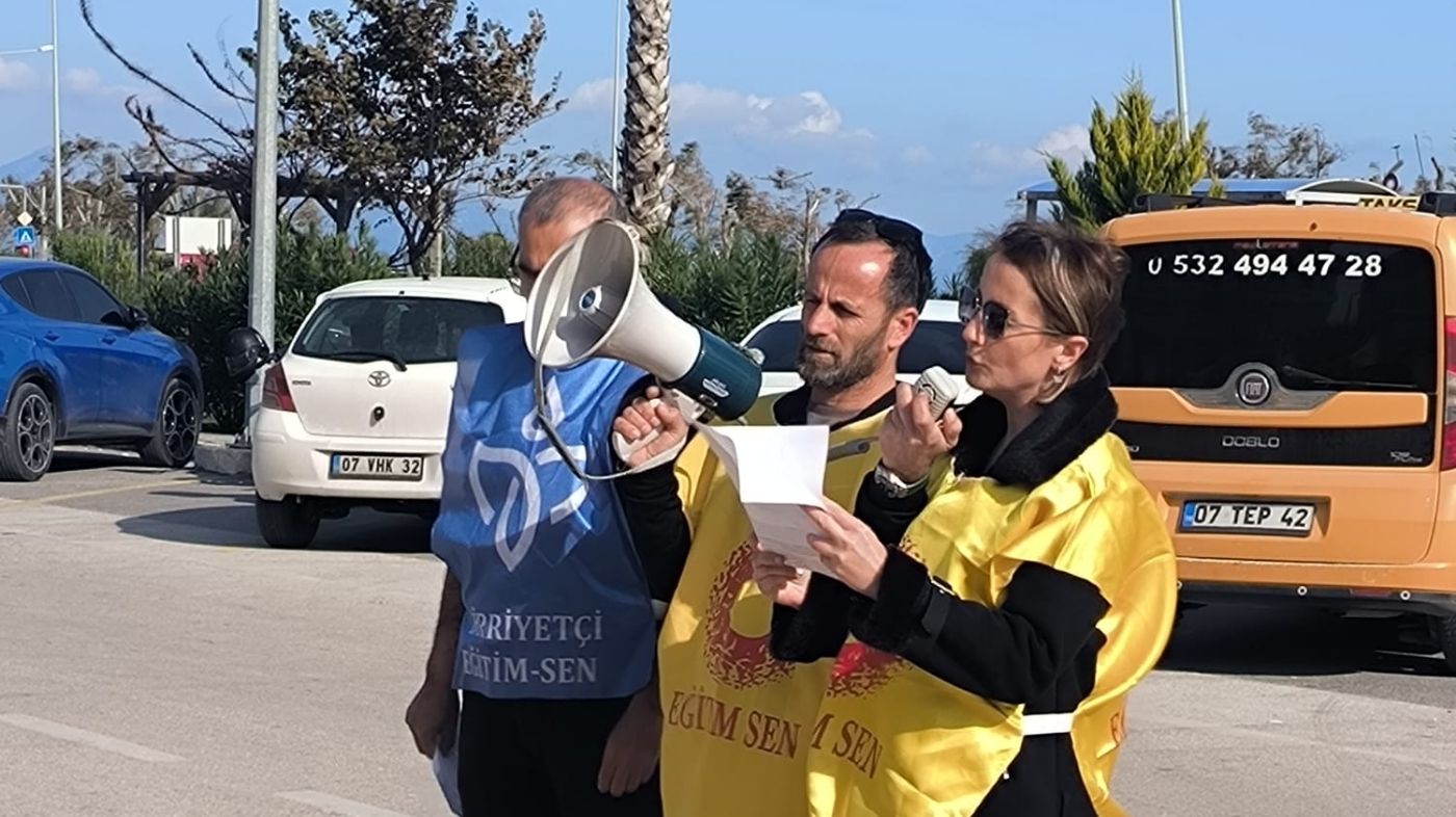 Finike’de Eğitim Sen ve Hürriyetçi Eğitim Sen, okullarda artan şiddete karşı güvenli eğitim ortamı ve acil önlem çağrısı yaptı.