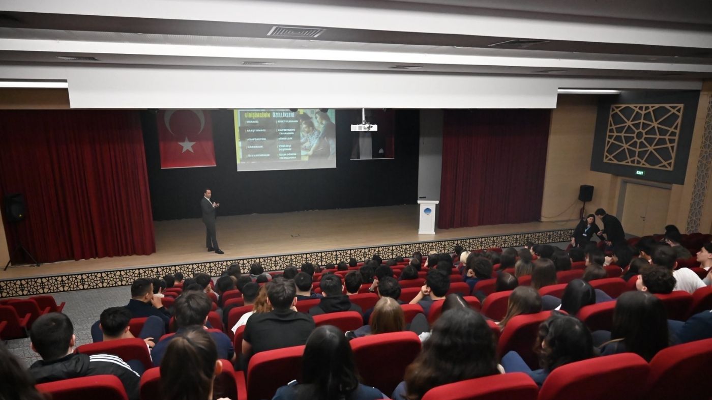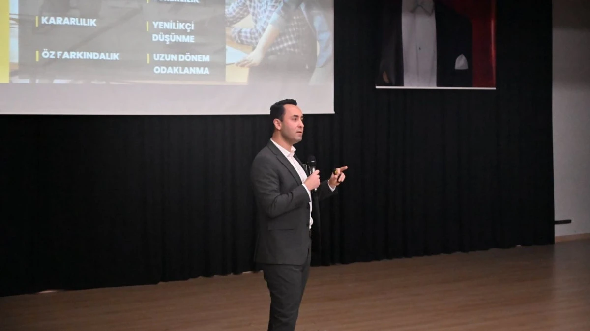 Ali Erman Aydın, konuşmasında girişimcilik yolculuğunda karşılaştığı zorlukları, bu süreçte kendisini motive eden unsurları ve kararlılığın başarıdaki rolünü vurguladı. Deneyimlerini samimi ve içten bir dille aktaran Aydın’ın konuşması öğrenciler tarafından ilgiyle takip edildi.