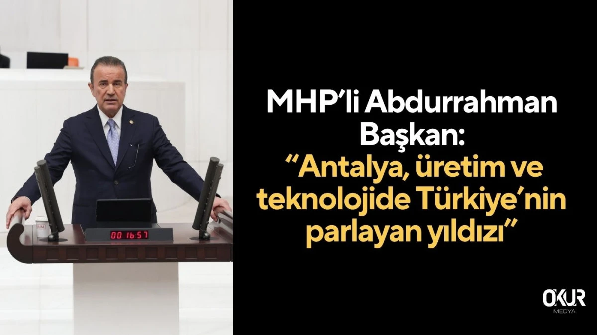 Milliyetçi Hareket Partisi MYK Üyesi, Antalya Milletvekili ve TBMM Sanayi, Ticaret, Enerji, Tabii Kaynaklar, Bilgi ve Teknoloji Komisyonu Üyesi Abdurrahman Başkan, Türkiye Büyük Millet Meclisi’nde Sanayi ve Teknoloji Bakanlığı’nın 2026 yılı bütçesine ilişkin yaptığı konuşmada, Antalya’nın üretim ve teknoloji alanında hızla güçlendiğini söyledi.