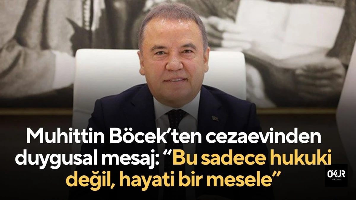 Antalya Büyükşehir Belediye Başkanı Muhittin Böcek, cezaevinden kamuoyuna duygusal bir mesaj gönderdi. Sağlık durumunun kötüleştiğini belirten Böcek, adalet ve vicdan çağrısında bulundu.