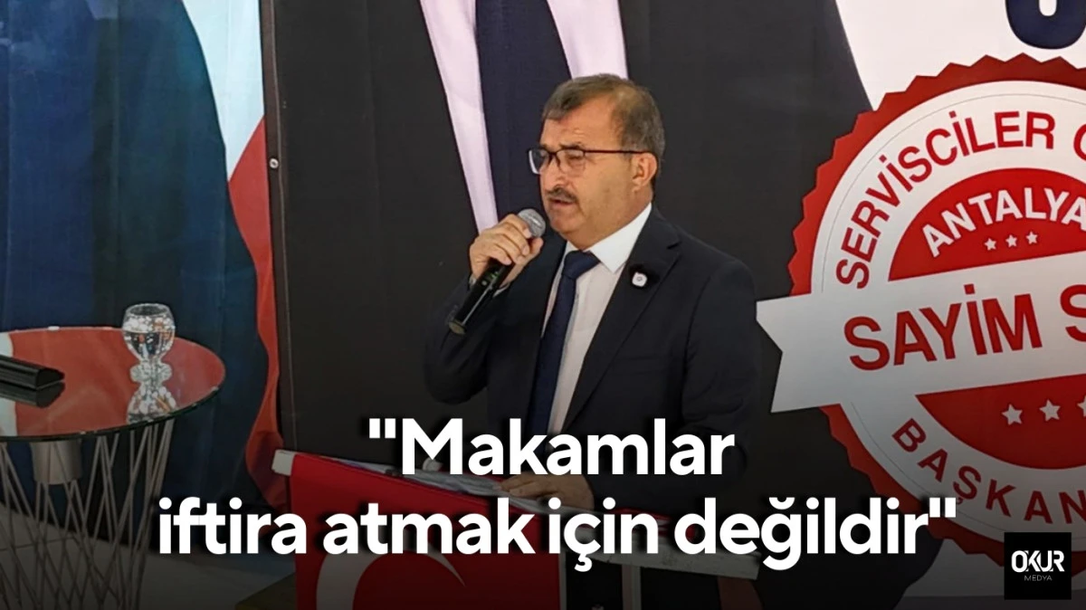 Antalya Esnaf Sanatkarlar Odaları Birliği’nin düzenlediği bir etkinlikte Antalya Servisçiler Odası başkanı Süleyman Şahin’in kendisine verilen plaketi Antalya Servisçiler Odası Başkan adayı Sayim Sarı’nın kendisine rakip çıkartıldığı gerekçesiyle kabul etmemesi üzerine Sayim Sarı kamuoyuna açıklama yaptı, ‘Makamlar iftira atmak için meşgul edilmemelidir’ dedi.